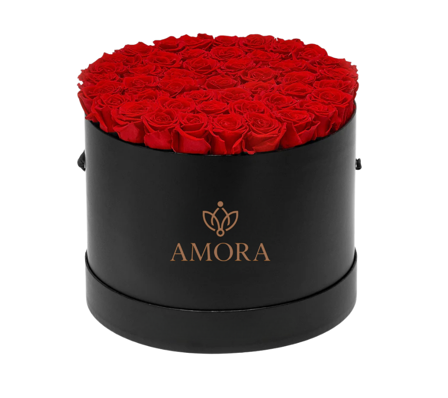 Éternelle Rouge reúne 45 rosas rojas ecuatorianas preservadas, tratadas con una técnica exclusiva que conserva su textura, color y aroma natural entre 1 y 3 años.
